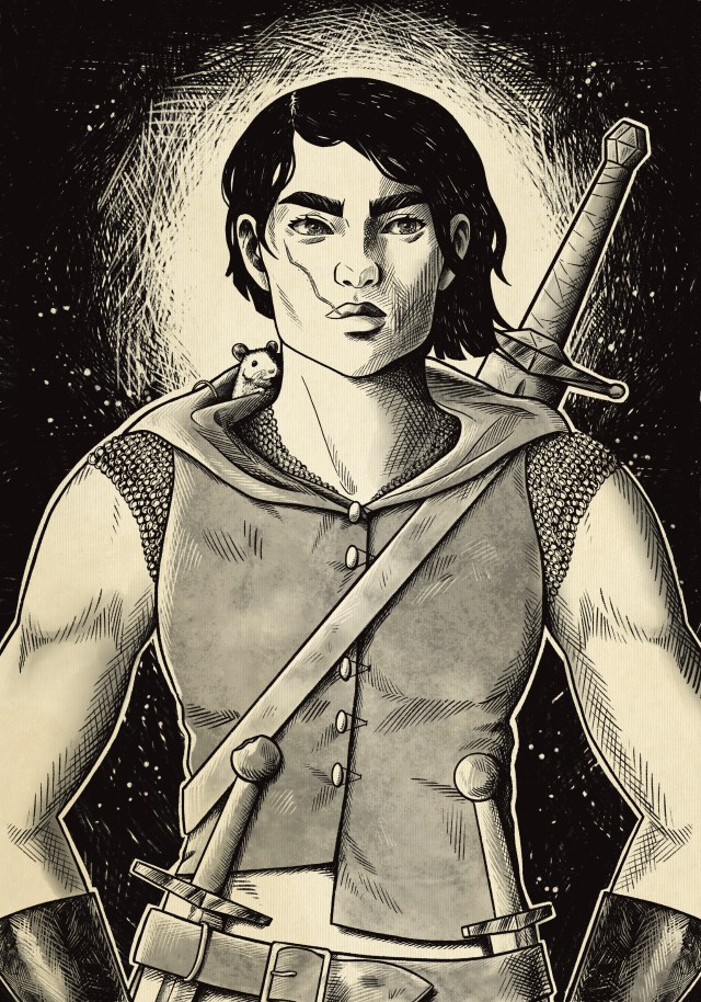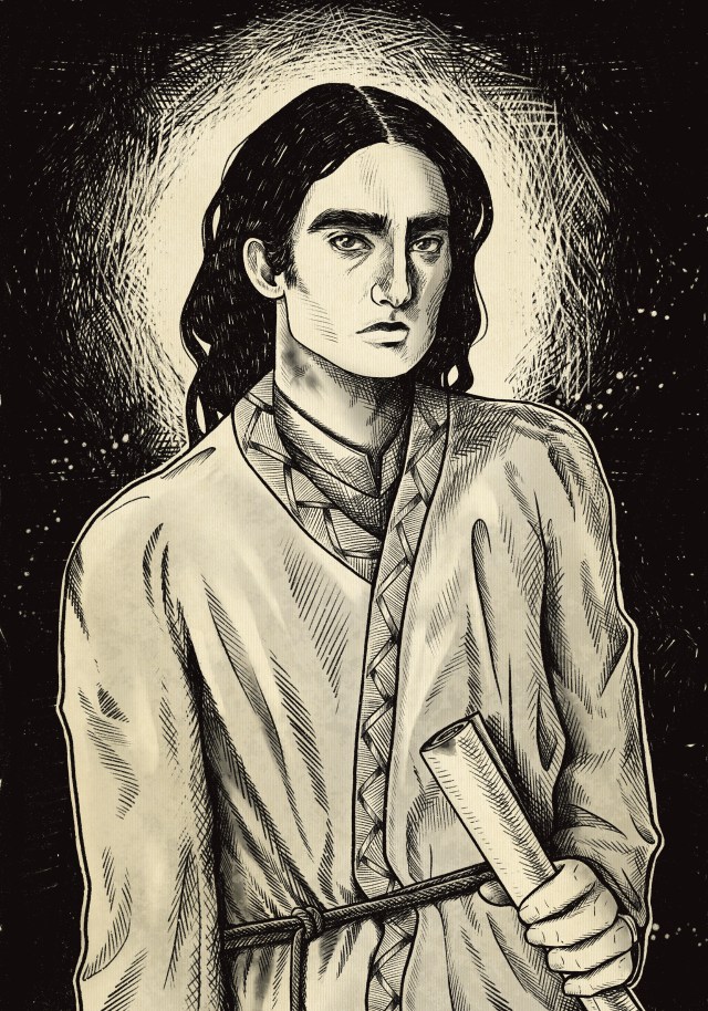 In fact, now that I know that he’s a teenage scribe just finding his way into magic, his longsword makes less sense. I love the idea of a mage with a real weapon, but I’m going to give him the silver for the sword and then spend 1sp on a boring old, stereotypical Gandalf staff.