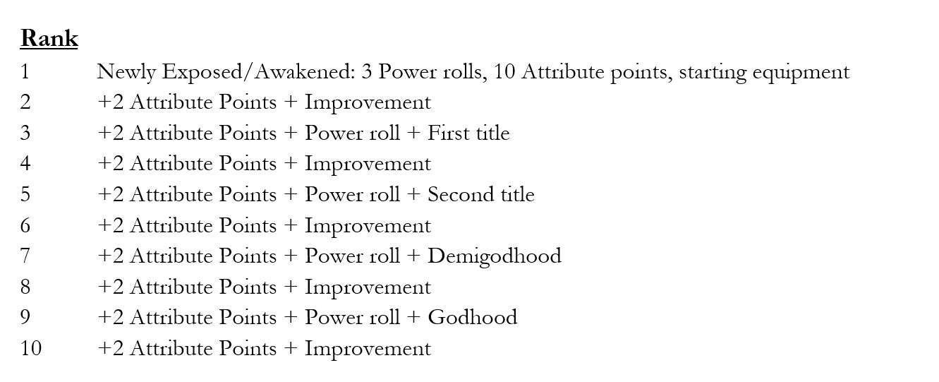 What are titles, you may be asking? And what does “Godhood” mean? I’m not sure, honestly, except to say that I like the idea of there being a “fame” element to Ranks in addition to power, and I’ve always loved earned titles in fantasy games and literature.
